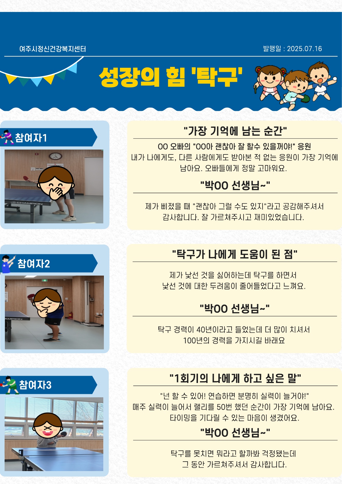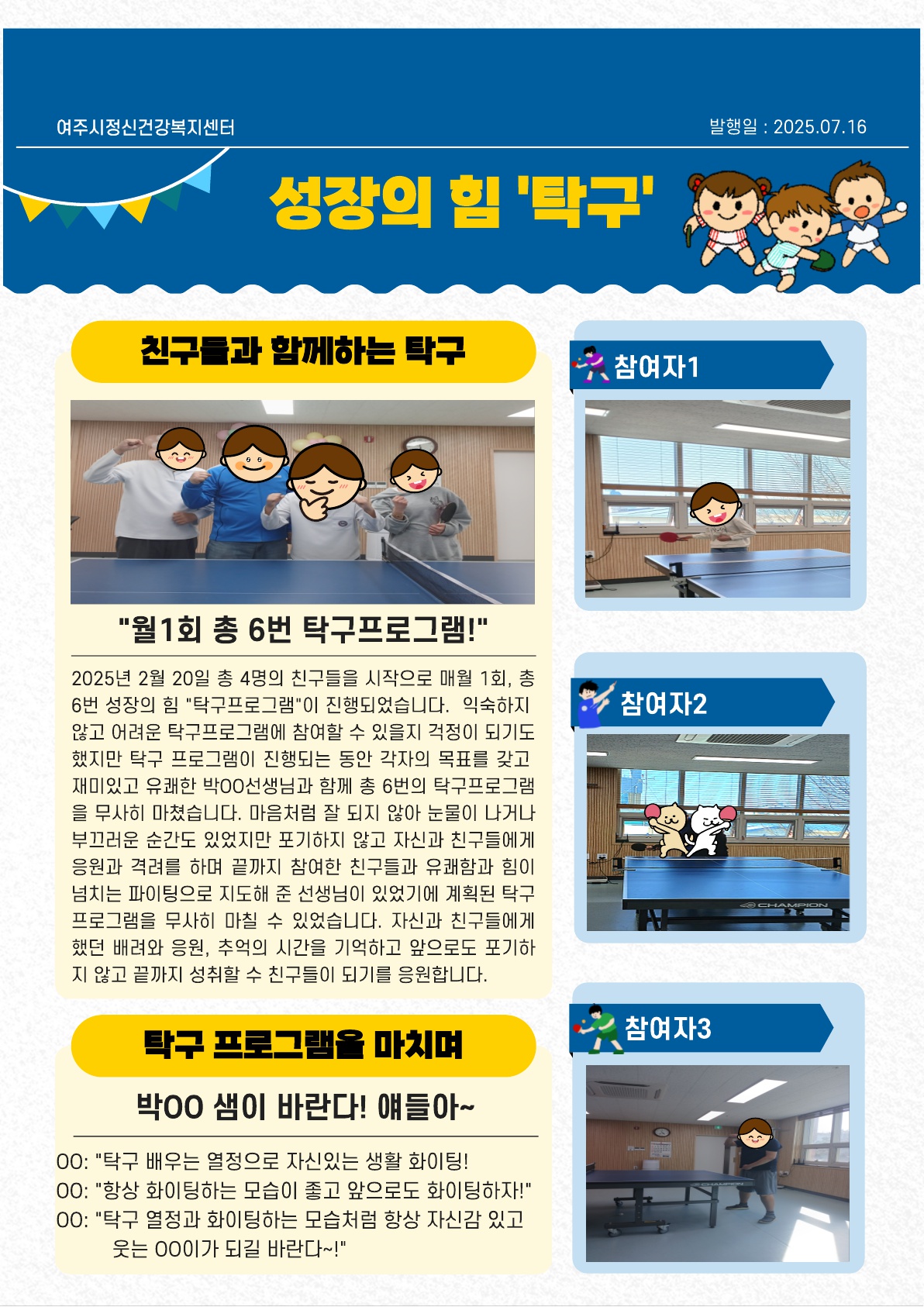 아동청소년 자조모임 성장의 힘 탁구프로그램