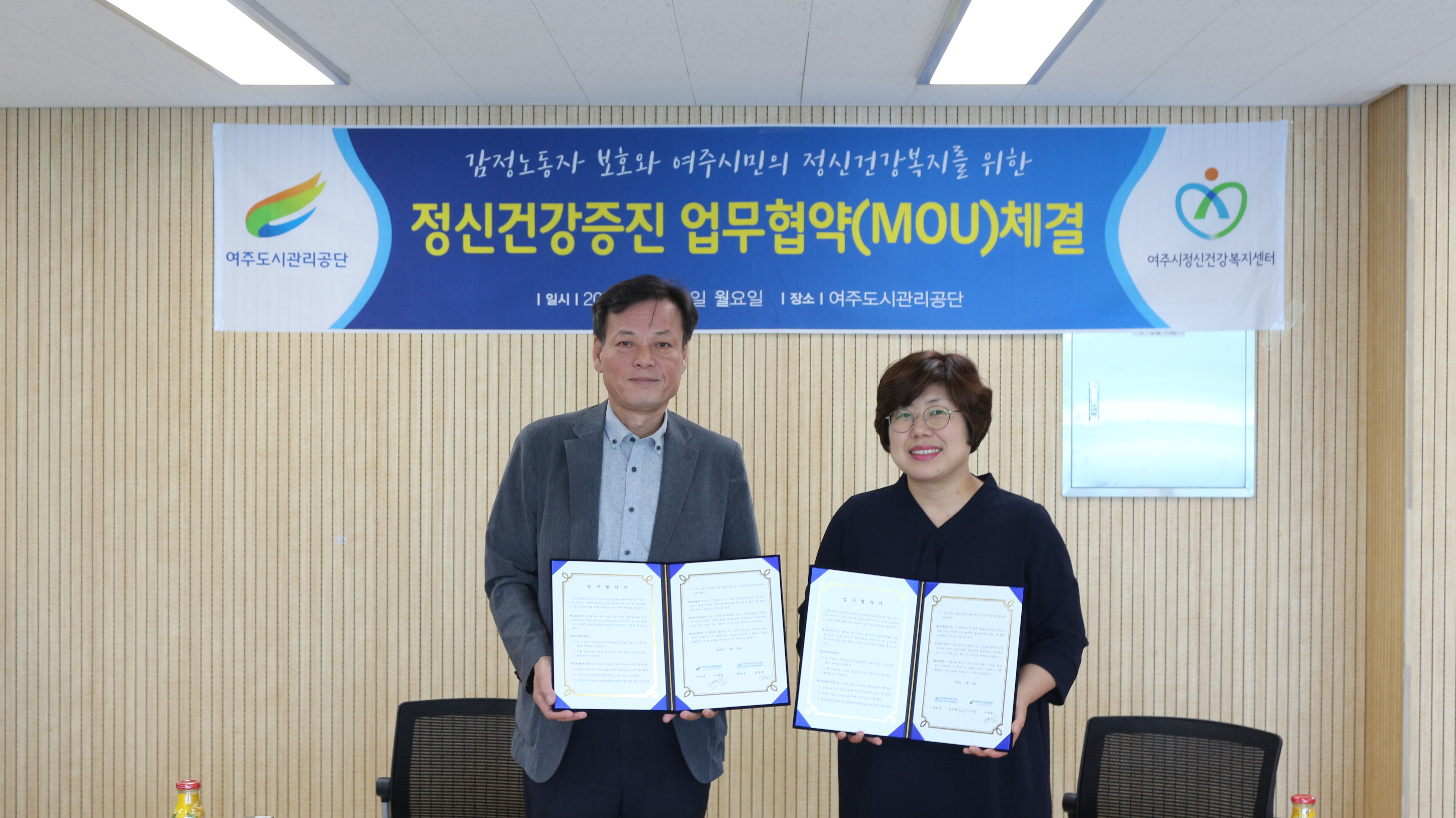 여주도시관리공단(이사장 여세현)은 감정노동자의 보호와 여주시민 및 공단직원의 정신건강증진을 위하여 정신건강 전문기관인 여주시정신건강복지센터(센터장 임정희)와 지난 8일 공동협력 업무협약(MOU)를 체결하였다고 밝혔다.